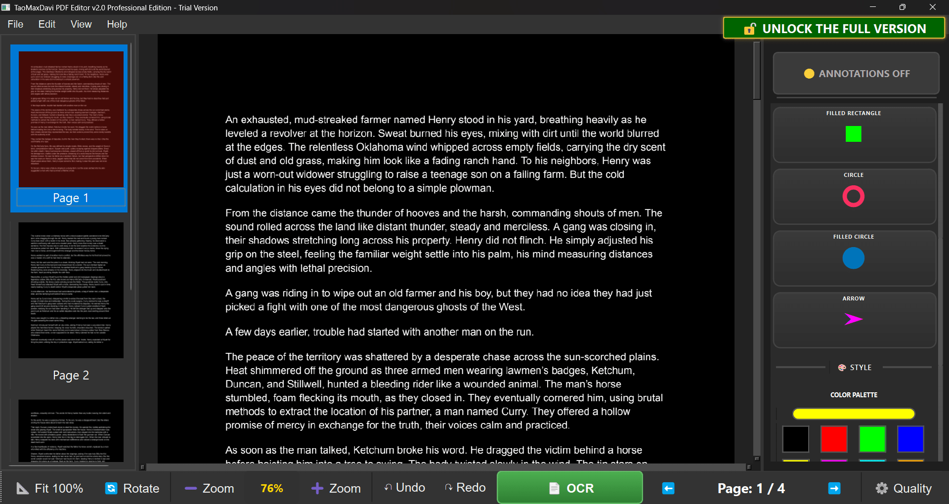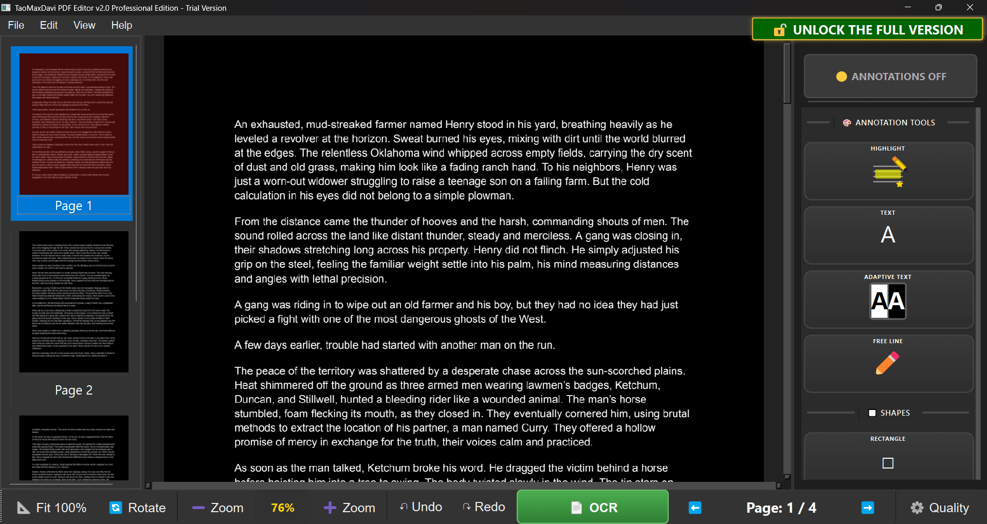 TaoMaxDavi PDF Editor for Windows delivers a strong blend of editing, annotation, and organizational tools packed into a user-friendly interface. It's capable enough for professional documentation work, thanks to features like OCR, merging, and detailed annotation. While not free, users can still test it out extensively before opting to buy the lifetime license.